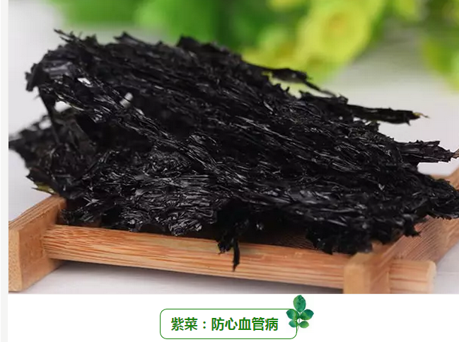 紫菜歷來被人們視為珍貴海味之一,素有“長(zhǎng)壽菜”的美稱。干紫菜中富含;撬幔可保護(hù)心肌、增強(qiáng)心臟功能,預(yù)防高血壓、冠狀動(dòng)脈粥樣硬化的發(fā)生。